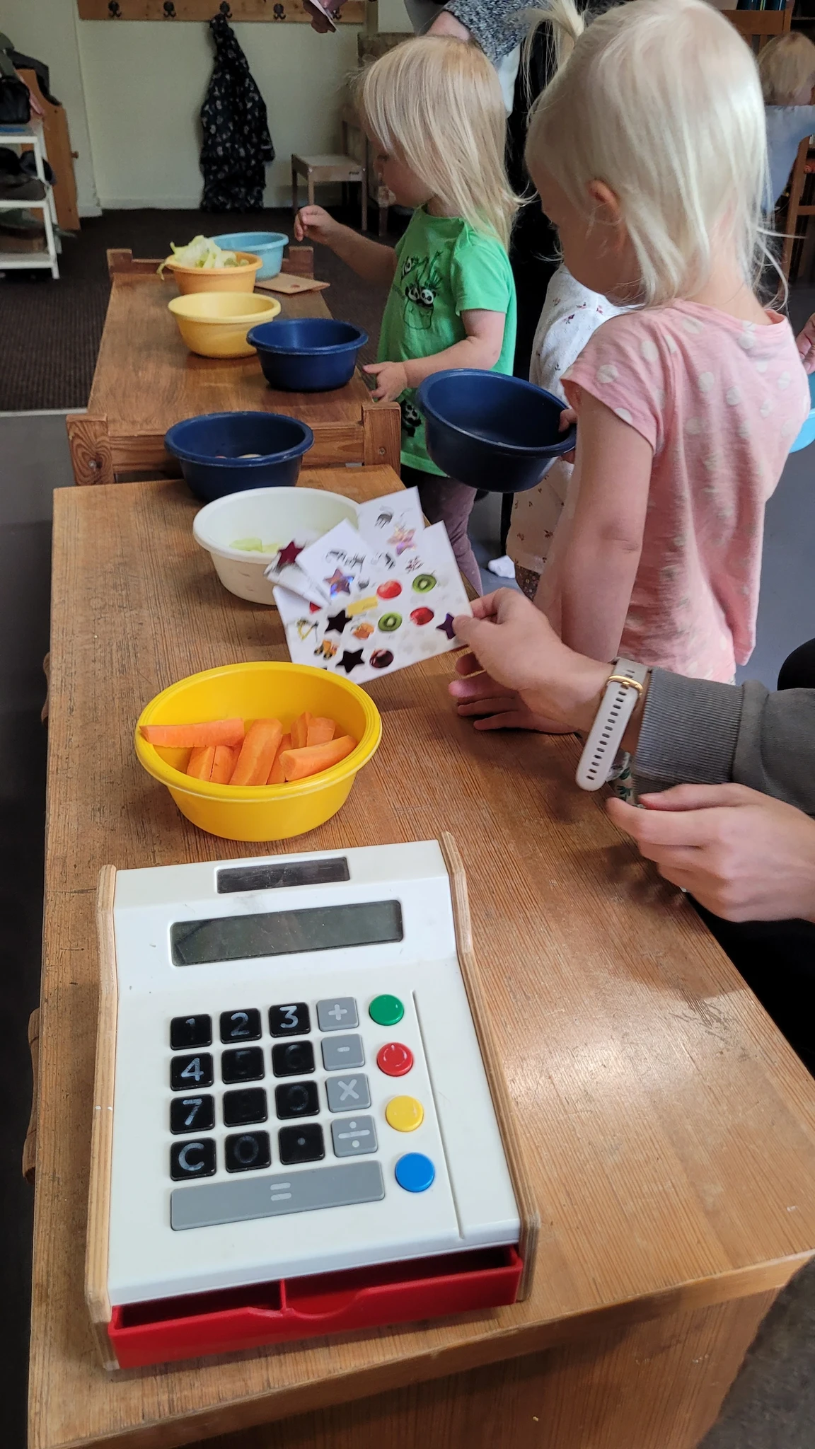 Sellel nädalal võtsime ette ühe põhjalikuma poeskäigu. Mõtlesime, mida meil poest vaja oleks ja misasja seal üldse müüakse. Riideid riidepoes, toitu toidupoes jne. Haldjapere poes oli meil olemas erinevaid näidiseid näiteks aedviljade kohta. Sorteerisime neid veidi ja asetasime soovitud esemed ostukorvi. Nii sai poeskäimise “kuivtrenn” tehtud.
