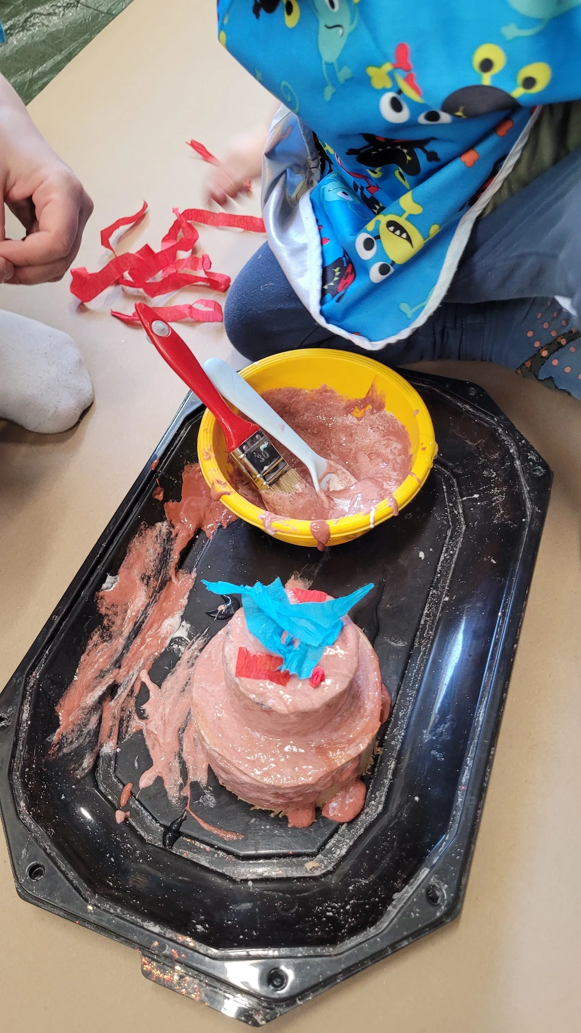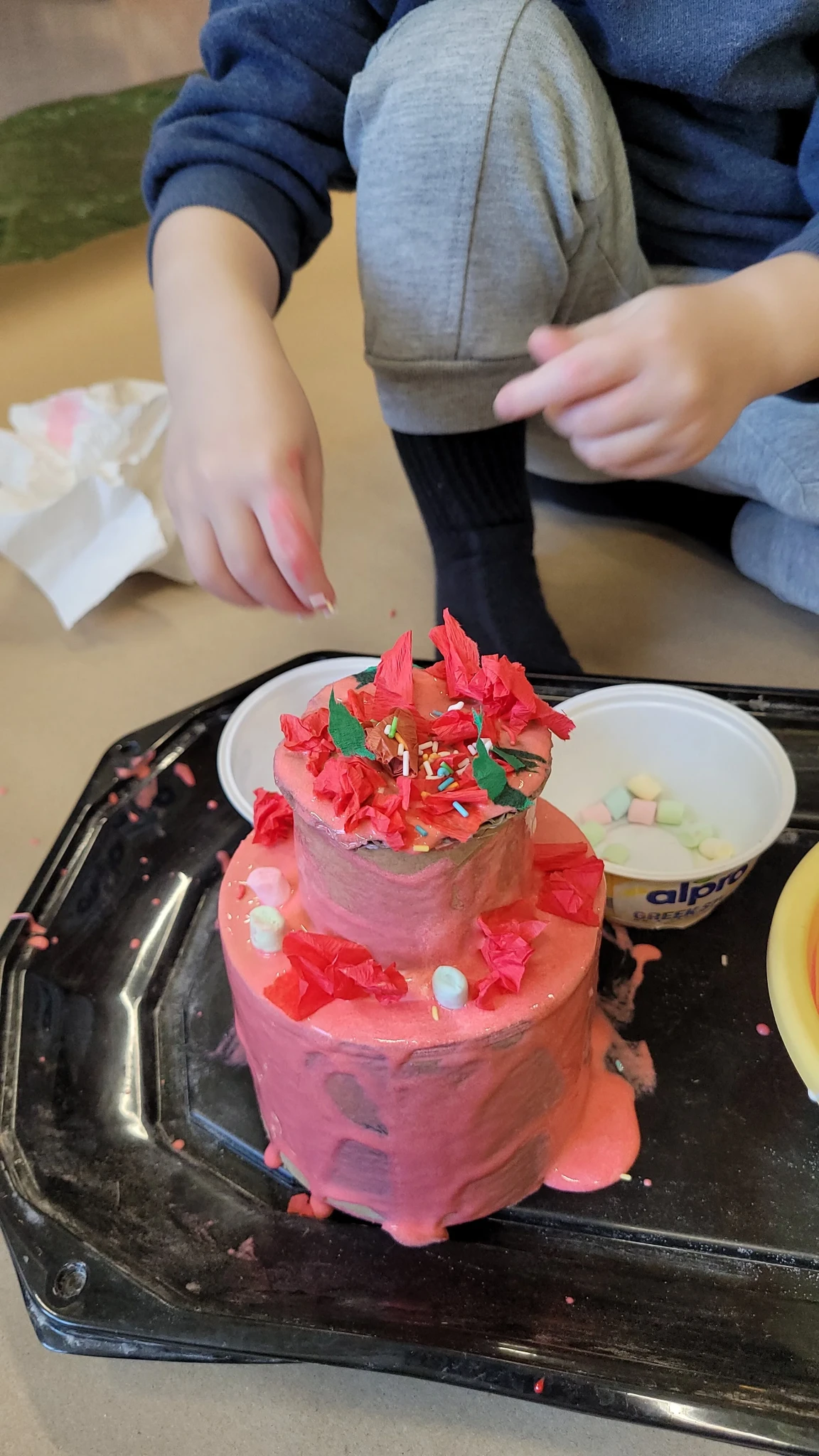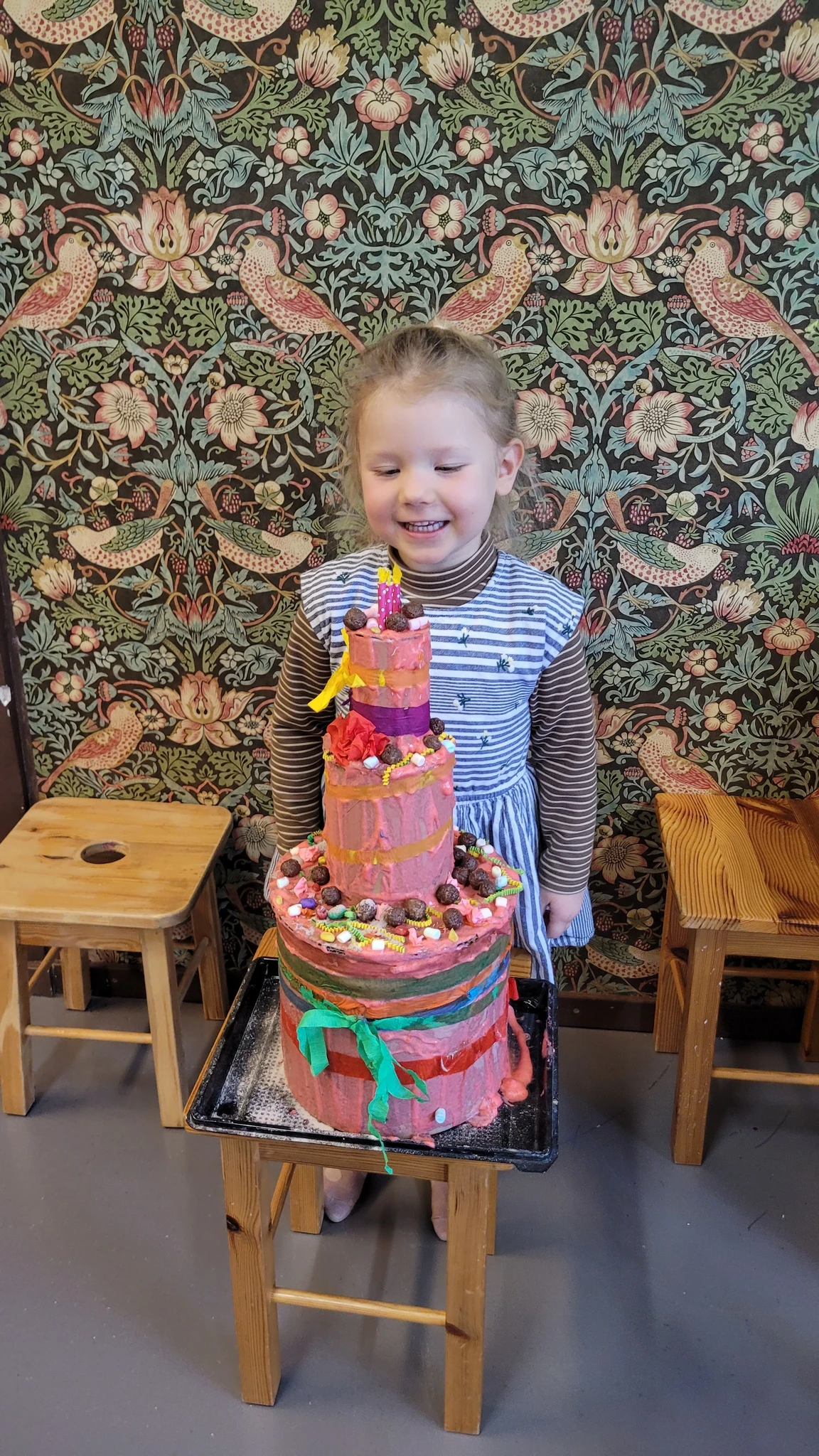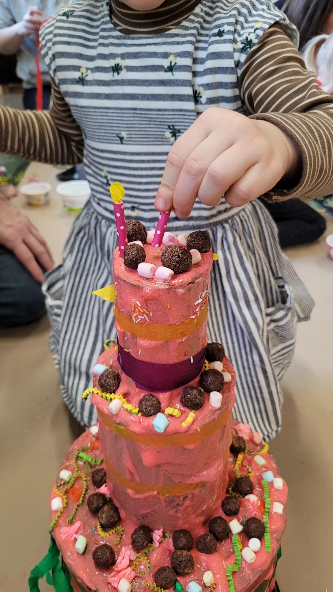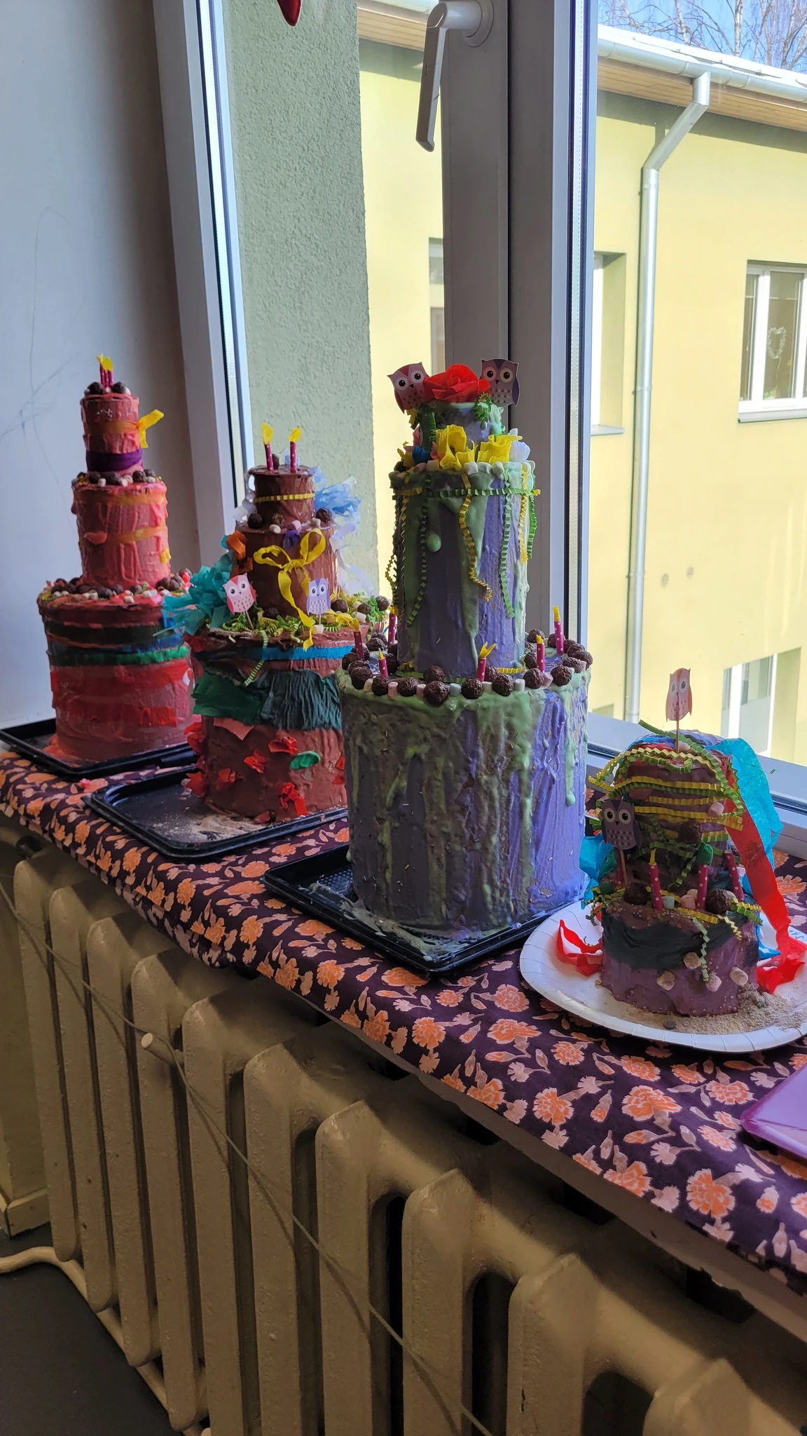 Tordi tõstsime ümber pabertaldrikule ja panime kuivama. Suuremad lapsed said proovida veel suuremaid ja kõrgemaid torte. See oli üks vägev tordipillekaar ja veebruar sai veelgi värvilisemaks ja magusamaks :)