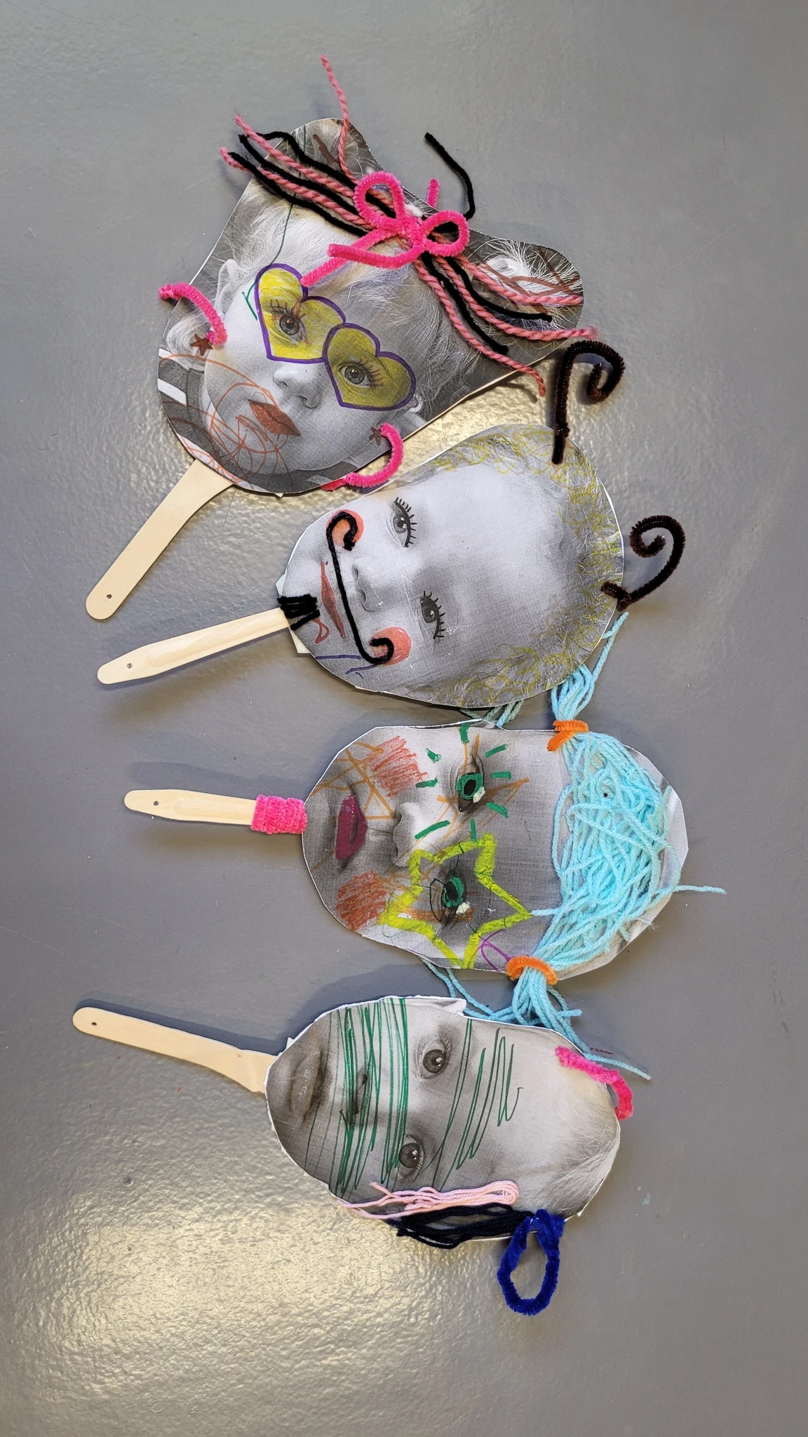 Meie nali aga sai selline. Tegime endast pilti, printisime välja ja hakkasime kaunistama ennast erinevate värvide, kleepsude ja karvatraatidega. Siis lõikasime näo välja ja kinnitasime teibiga selle taha puupulga. Nüüd sai igaüks enda naljanäoga teatrit teha.